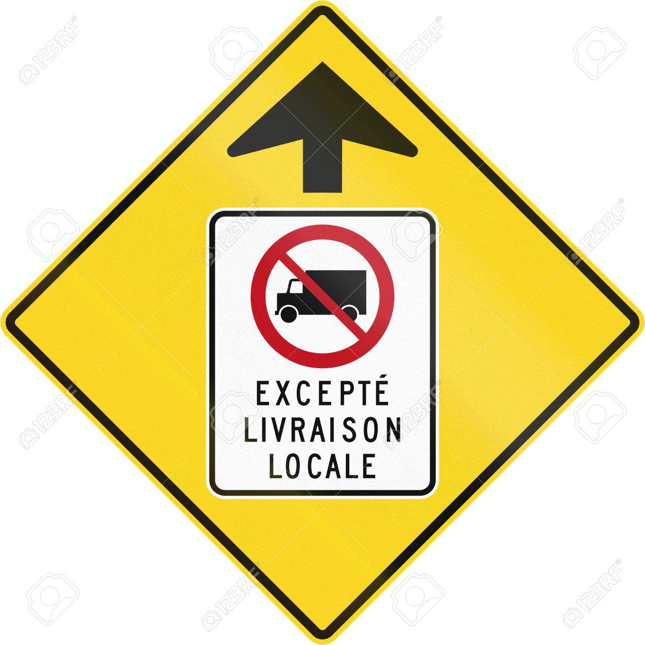 Warning Road Sign In Quebec Canada Lorry Prohibition Ahead The Text Means Except Local Delivery Stock Photo Picture And Royalty Free Image Image 43901015